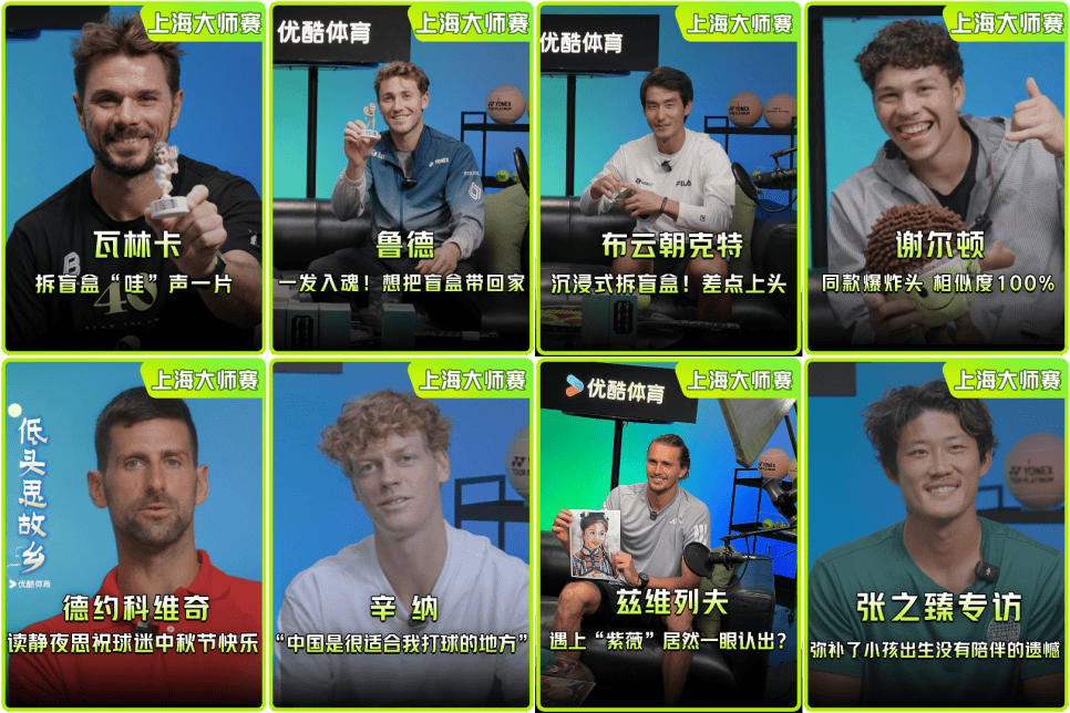 优酷体育还上线独家幕后专访,带领观众了解超级巨星的幕后轶事。球星用中文送祝福、拆尤尼克斯球星盲盒、表情包游戏等展现了赛场外的立体化一面,成为这个假期休闲内容的另一注脚。