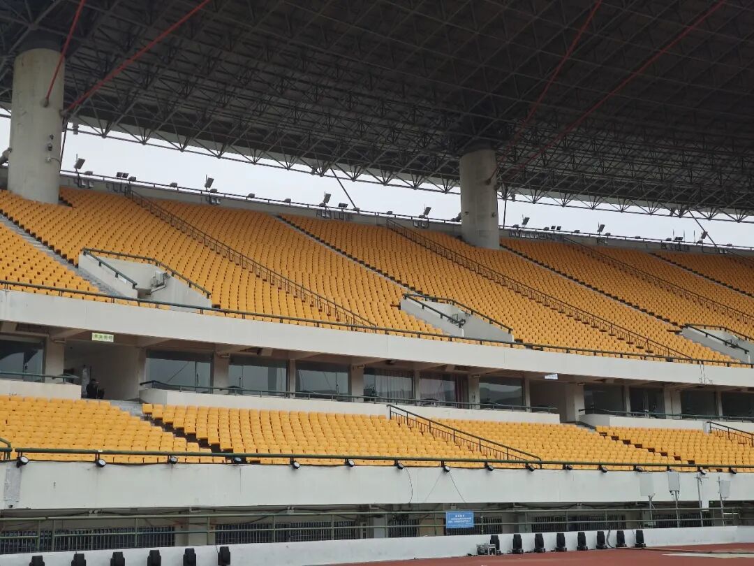 台州市体育中心建成已逾20年,为迎接“吴越杯”,中心对看台座椅进行全面整修,并对球员休息室、竞赛办公室等服务用房进行修缮升级。在灯光方面,为满足比赛直播要求,中心将原有灯光系统全面改造为LED照明,达到专业足球赛事的灯光标准。此外,球门已更换为符合专业比赛要求的插入式球门,替补席也按照职业比赛标准更新。